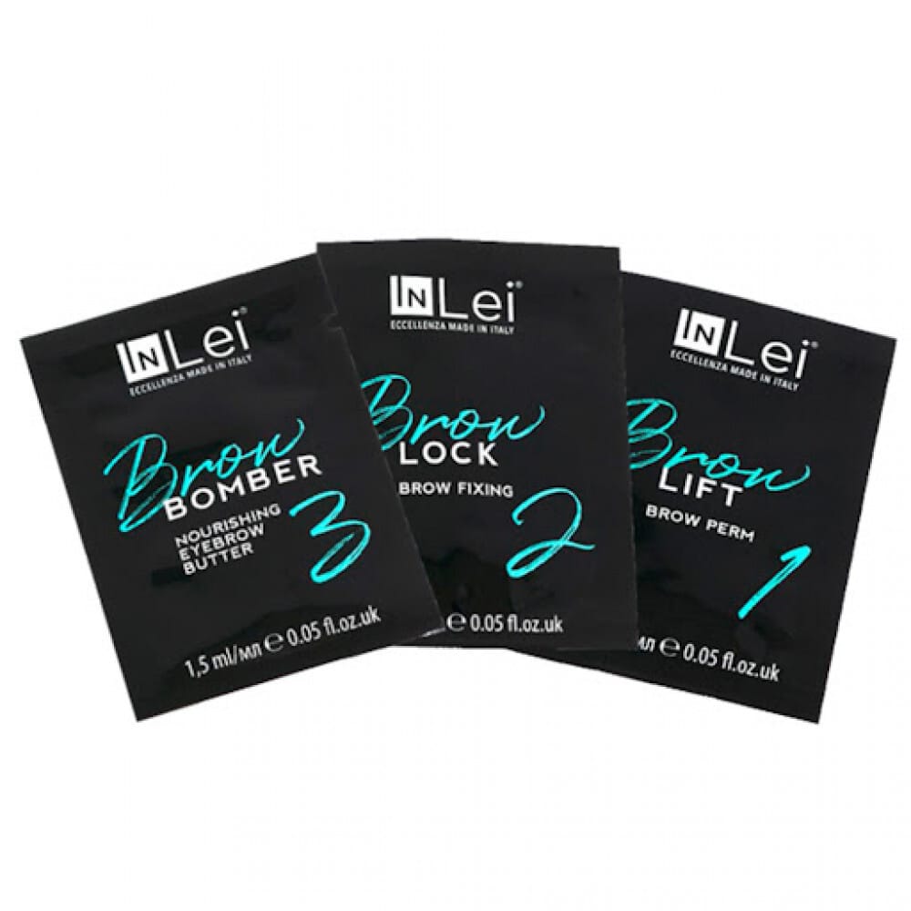 סט InLei Brow Lift + Lock + Bomber בשקיות — שלושת השלבים המלאים לטיפול Brow Bomber. עיצוב, קיבוע והזנה של הגבות לתוצאה מושלמת, ברק טבעי וגמישות. תוצרת איטליה