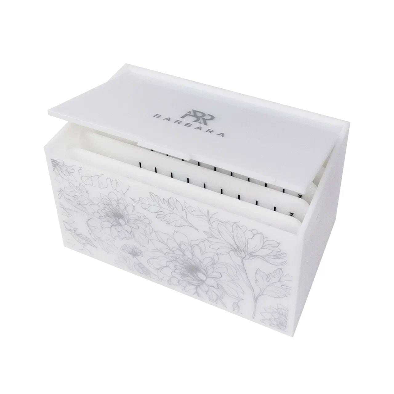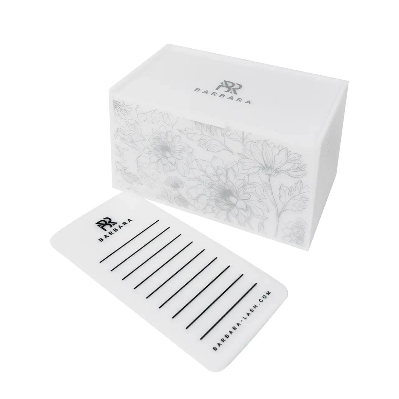 קופסת ריסים לבנה Barbara כוללת 5 טאבלטים נוחים לעבודה מקצועית.