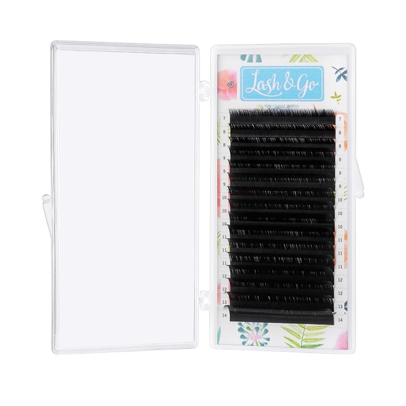 Классические чёрные ресницы для наращивания Lash&Go из высококачественного эластичного моноволокна с равномерным насыщенным цветом до самых кончиков.