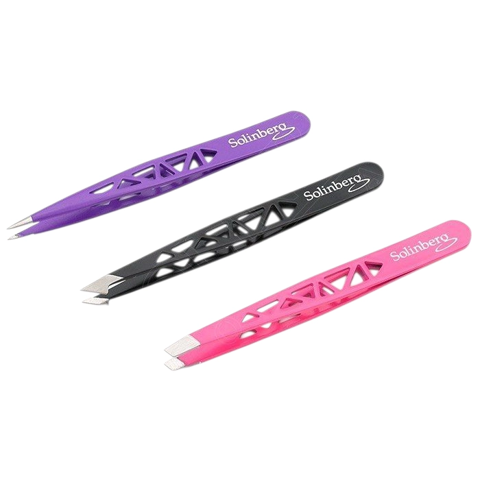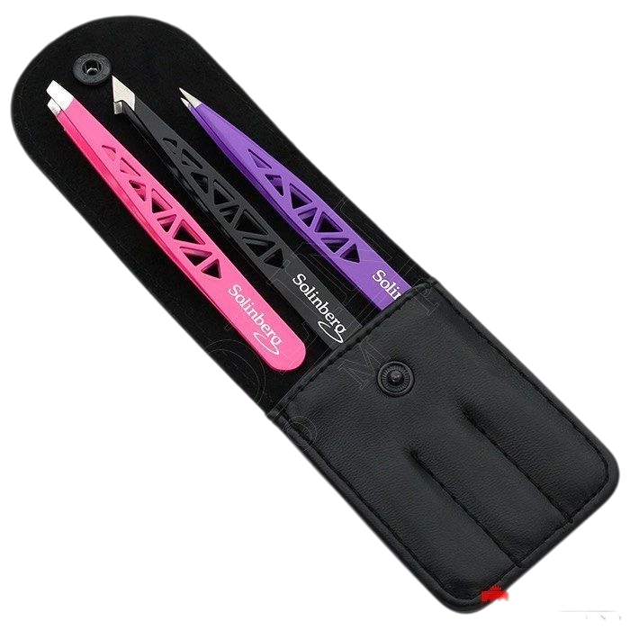 Набор пинцетов Solinberg 003B 3шт предназначен для точной коррекции бровей и удаления волосков любой длины